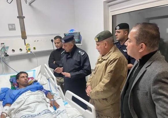 مدير الأمن العام يعود الرقيب الشورة بعد إصابته في مداهمة أمنية