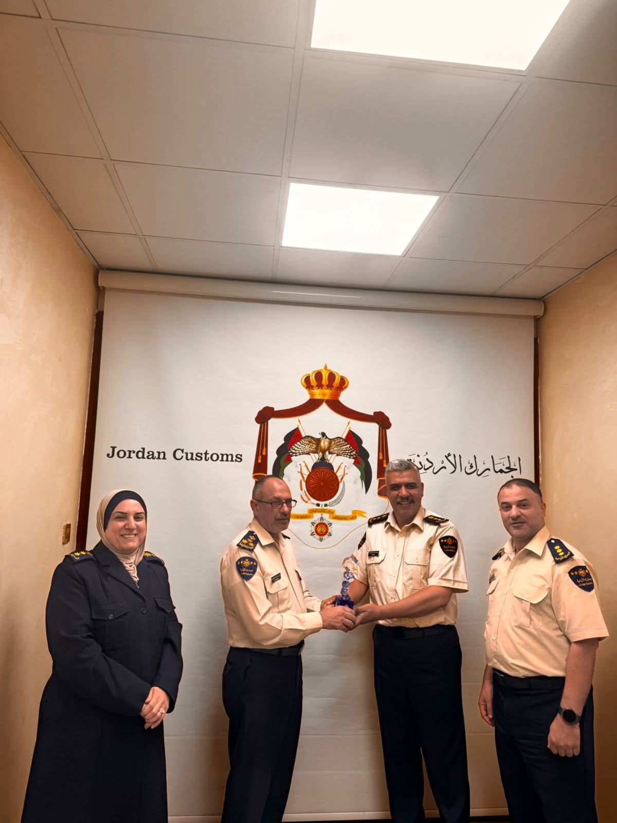 فريق الثقافة المؤسسية بالجمارك يُقدّم مجسم القيم المؤسسية للمدير العام للبريد الاردني