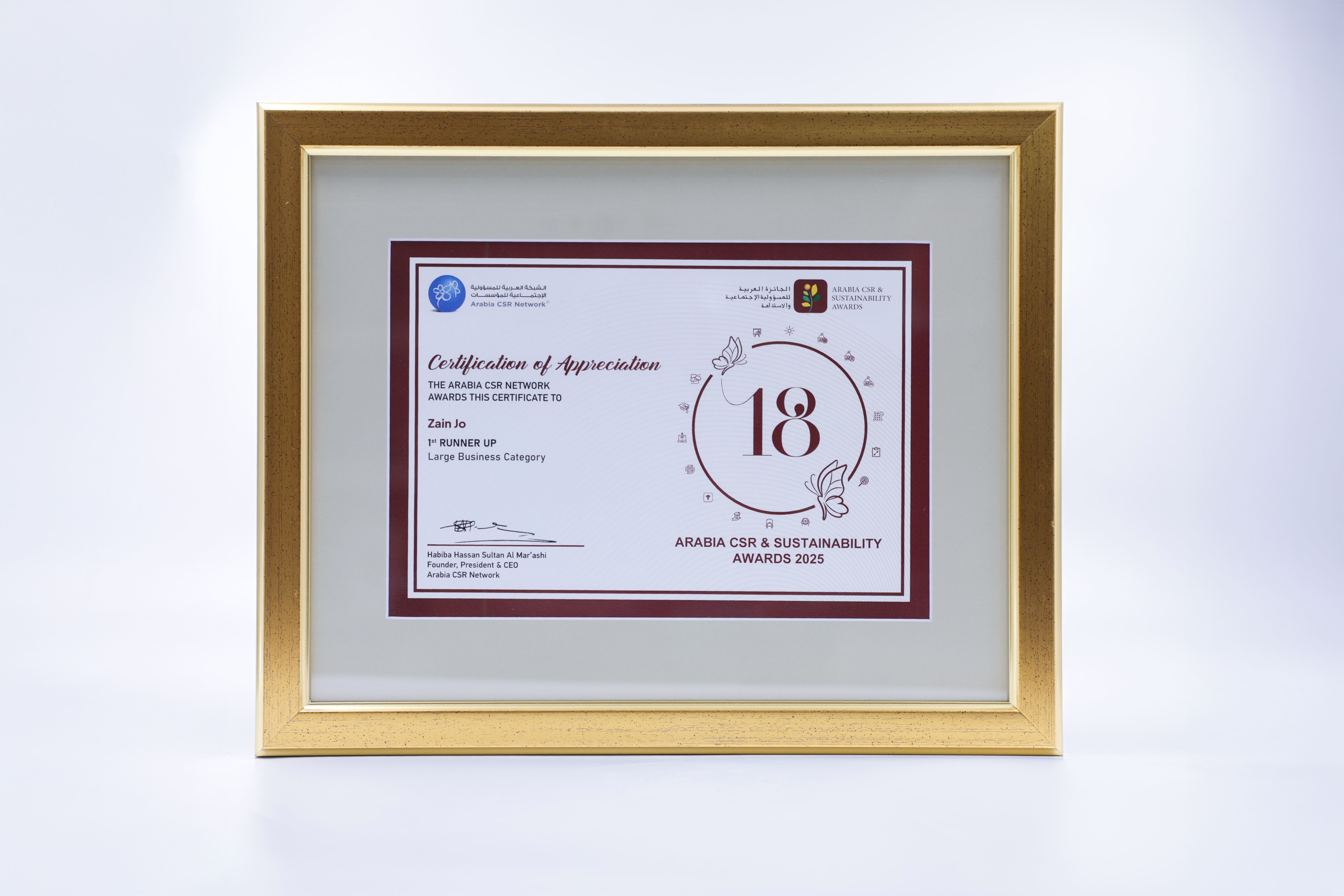 هذه الجائزة لتُرسّخ مكانة شركة زين الأردن الريادية، كونها إحدى أوائل الشركات
