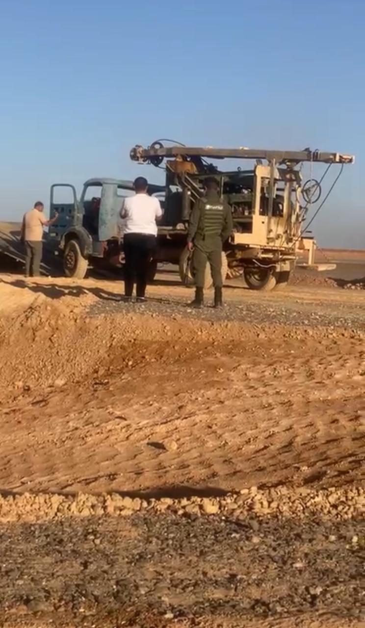 حملة امنية لضبط الحفارة التي تقوم بحفر بئر مخالف في الجفر - محافظة معان