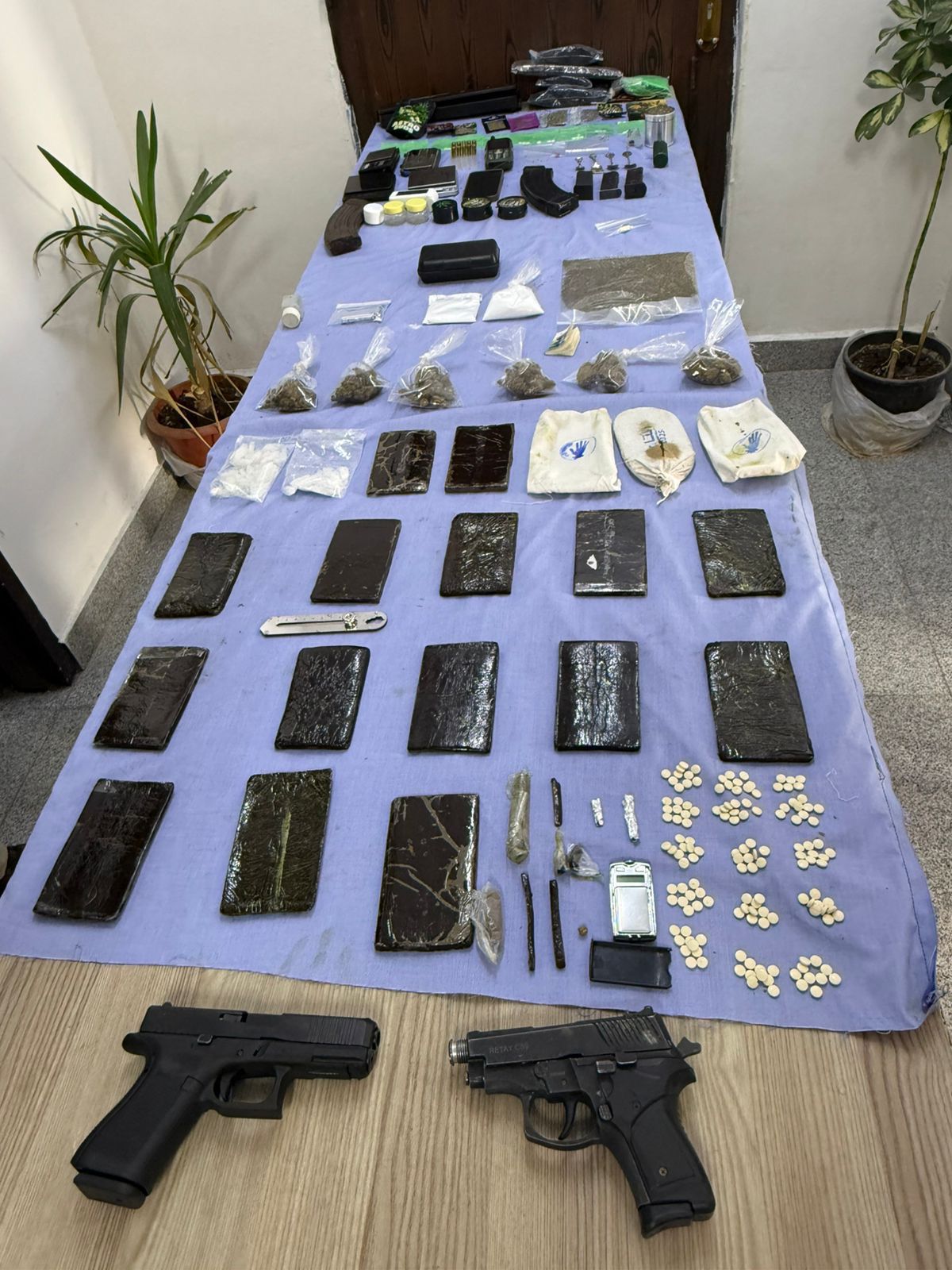 والقاء القبض عليهما وضبط بحوزتهما 40 كف حشيش ،فيما دوهم في محافظة الزرقاء