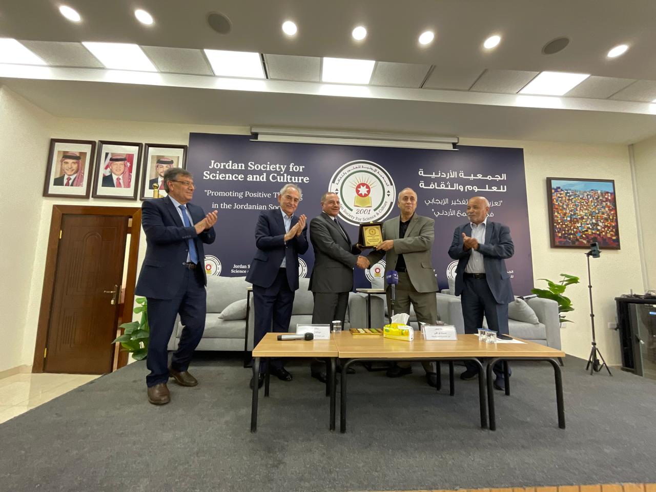 الجمعية والحضور.. كما وقامت الجمعية الاردنية للعلوم والثقافة بتقديم درع الجمعية
