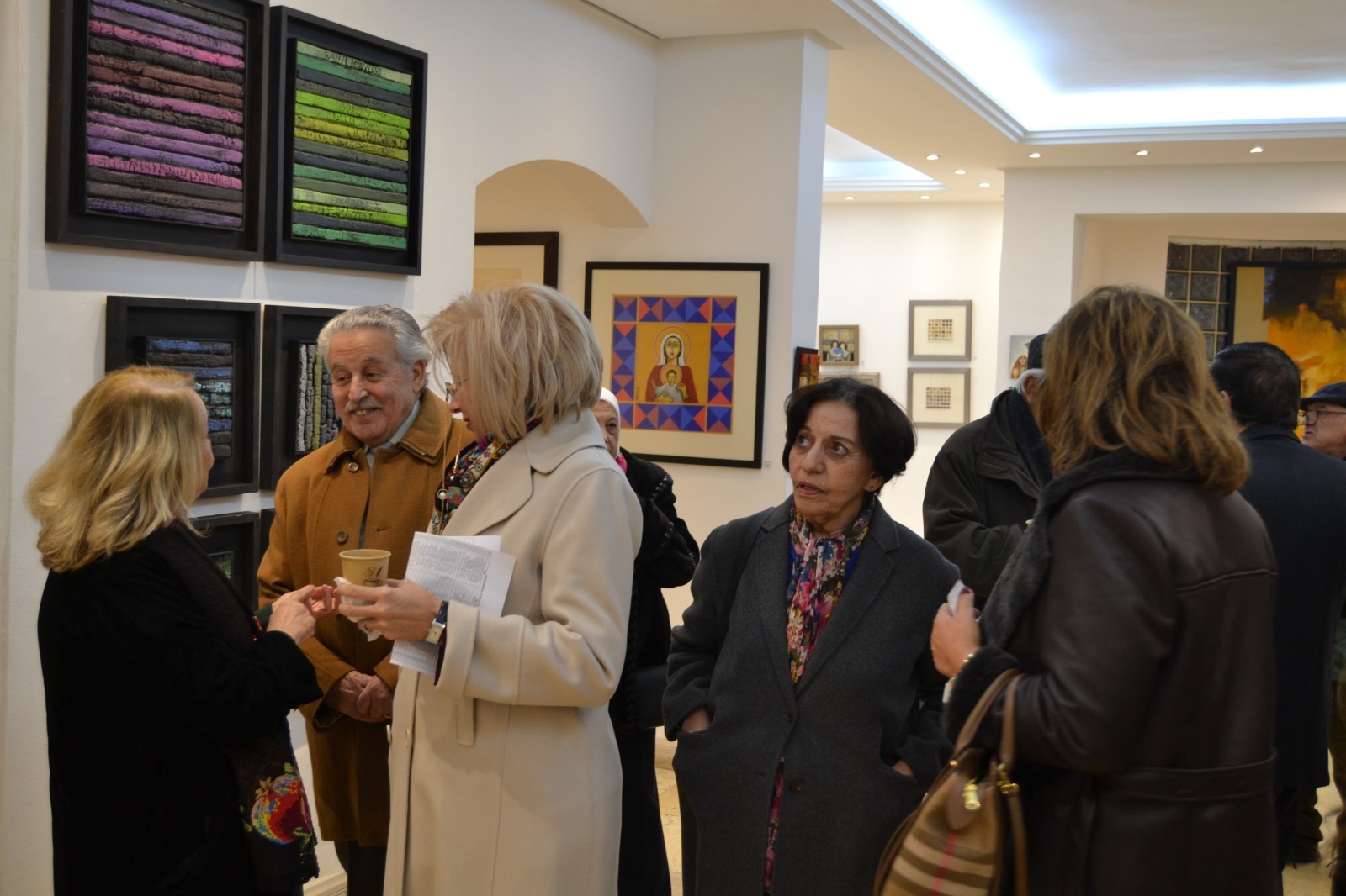 في استقبال راعيي الافتتاح والحضور الفنانة السيدة سعاد عيساوي، مديرة جاليري رؤى