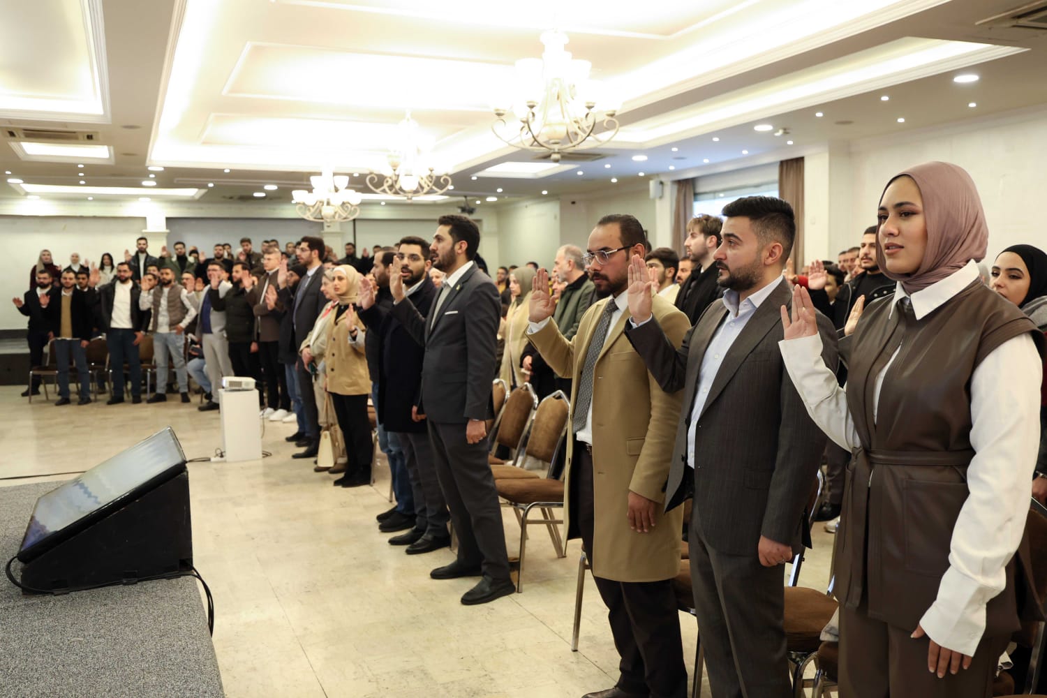 القسم القانوني، الذي تلاه عضو المجلس محمد الحباشنة، قبل أن يتسلموا بطاقات