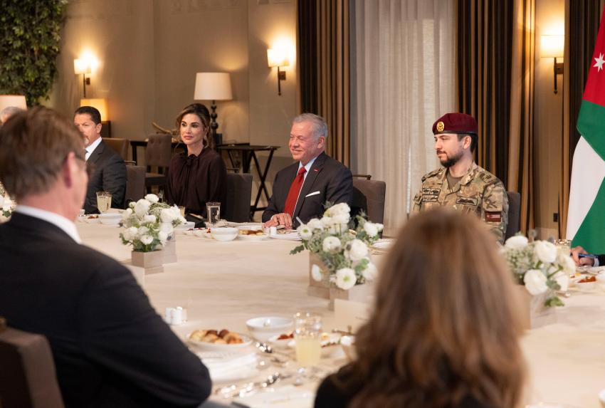 رانيا العبدﷲ والسيدة الأولى إلكه بودنبندر وسمو الأمير الحسين بن عبدﷲ الثاني ولي