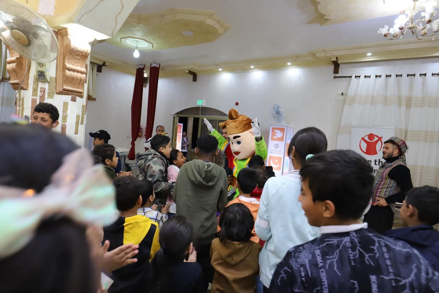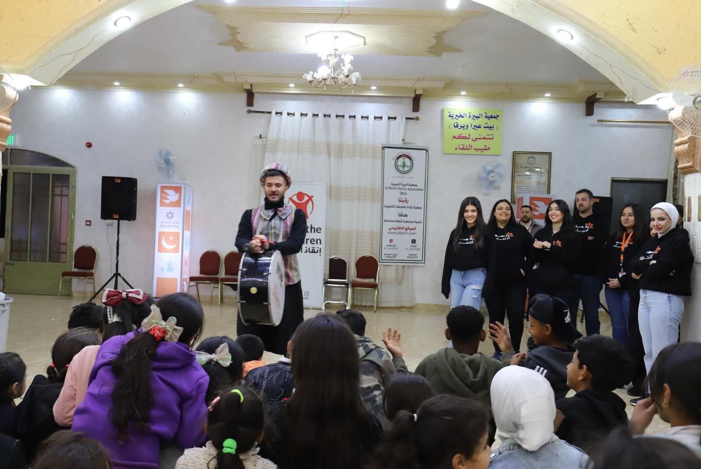 على أن يشاركوا الأطفال الفرح ضمن الفقرات الترفيهية، كما قاموا بتوزيع وجبات