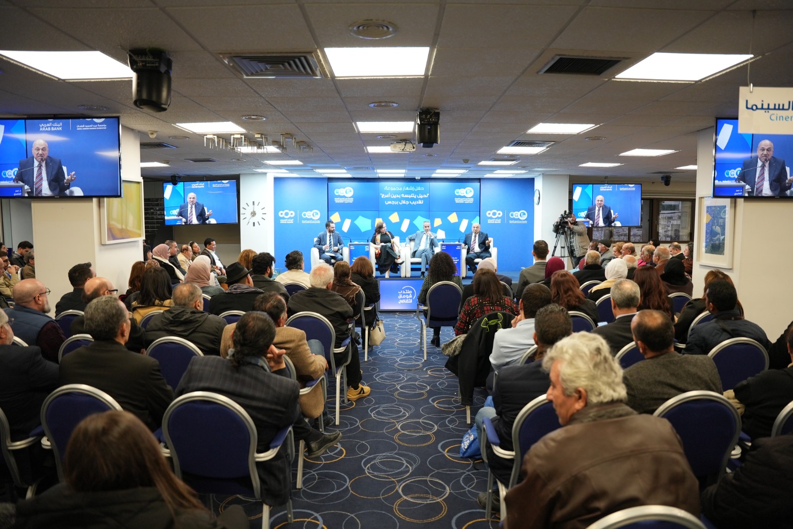 إلى جانب المؤلف، وزيرة الثقافة السابقة الكاتبة بسمة النسور، والناقد والأكاديمي