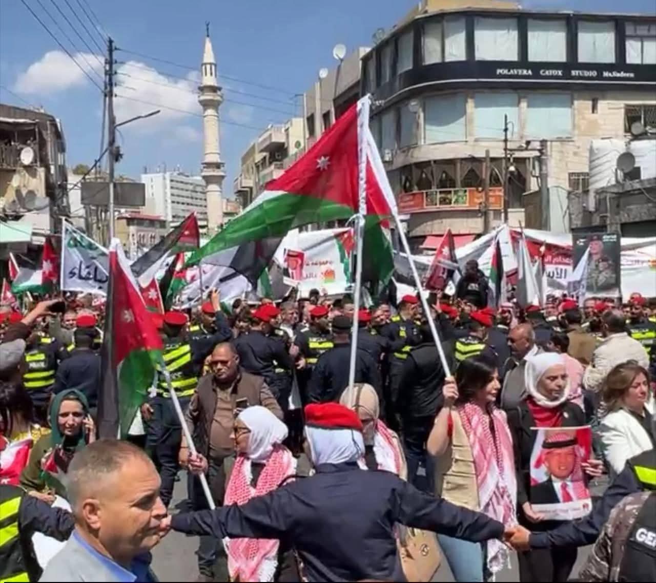 ودعم المشاركون في المسيرات المواقف الملكية الأردنية الخالدة