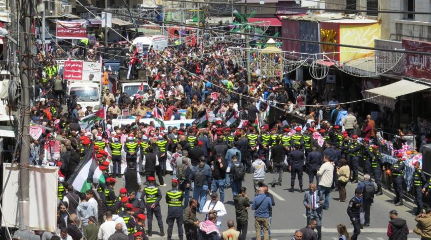 المسيرة الاردنيين من مختلف المشارب السياسية، حيث شاركت فيها احزاب المعارضة وقوى