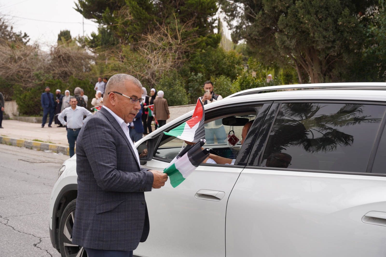 خلال تنظيم حملة ميدانية لتوزيع الأعلام على المواطنين والسائقين في منطقة دير