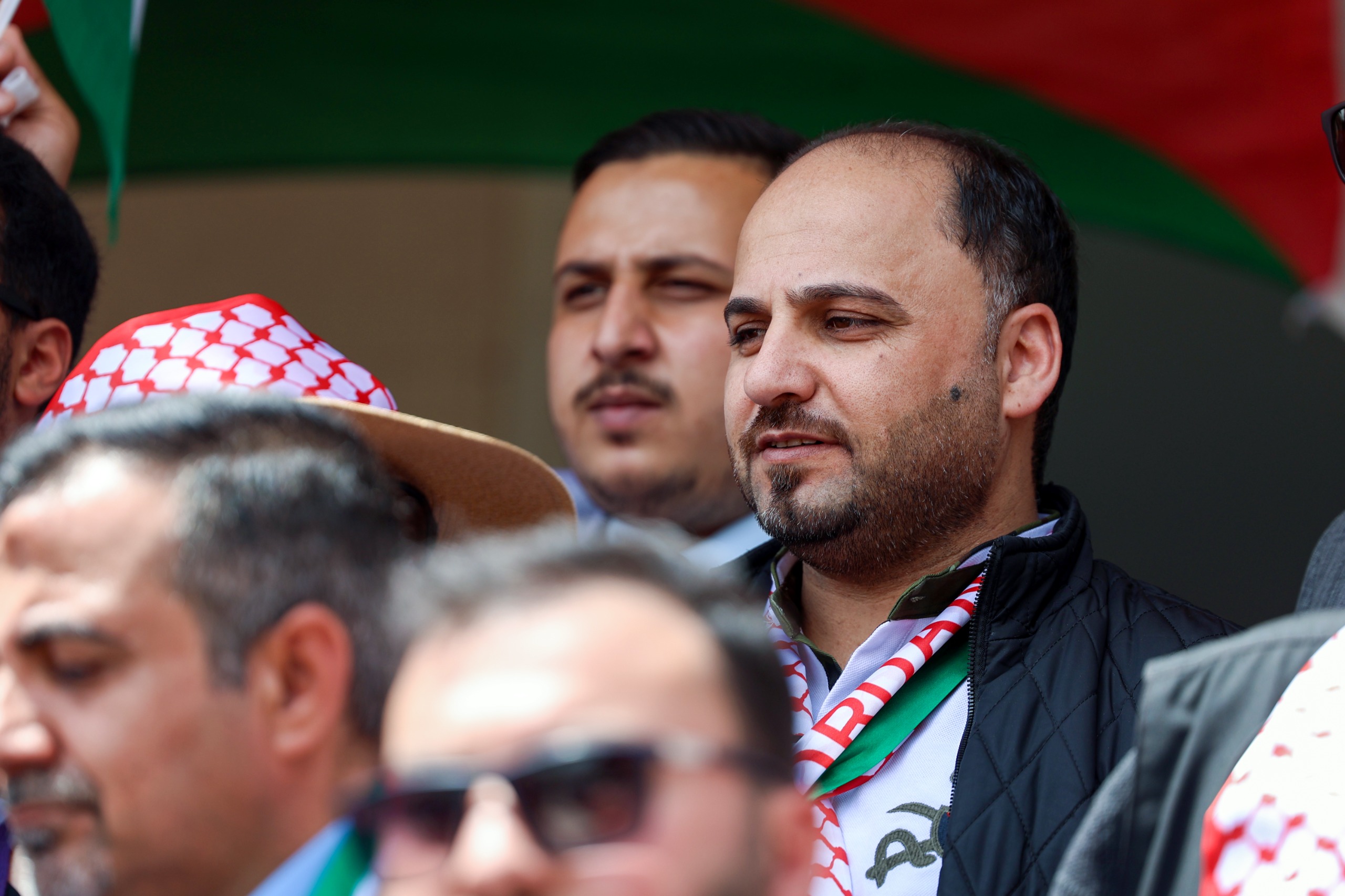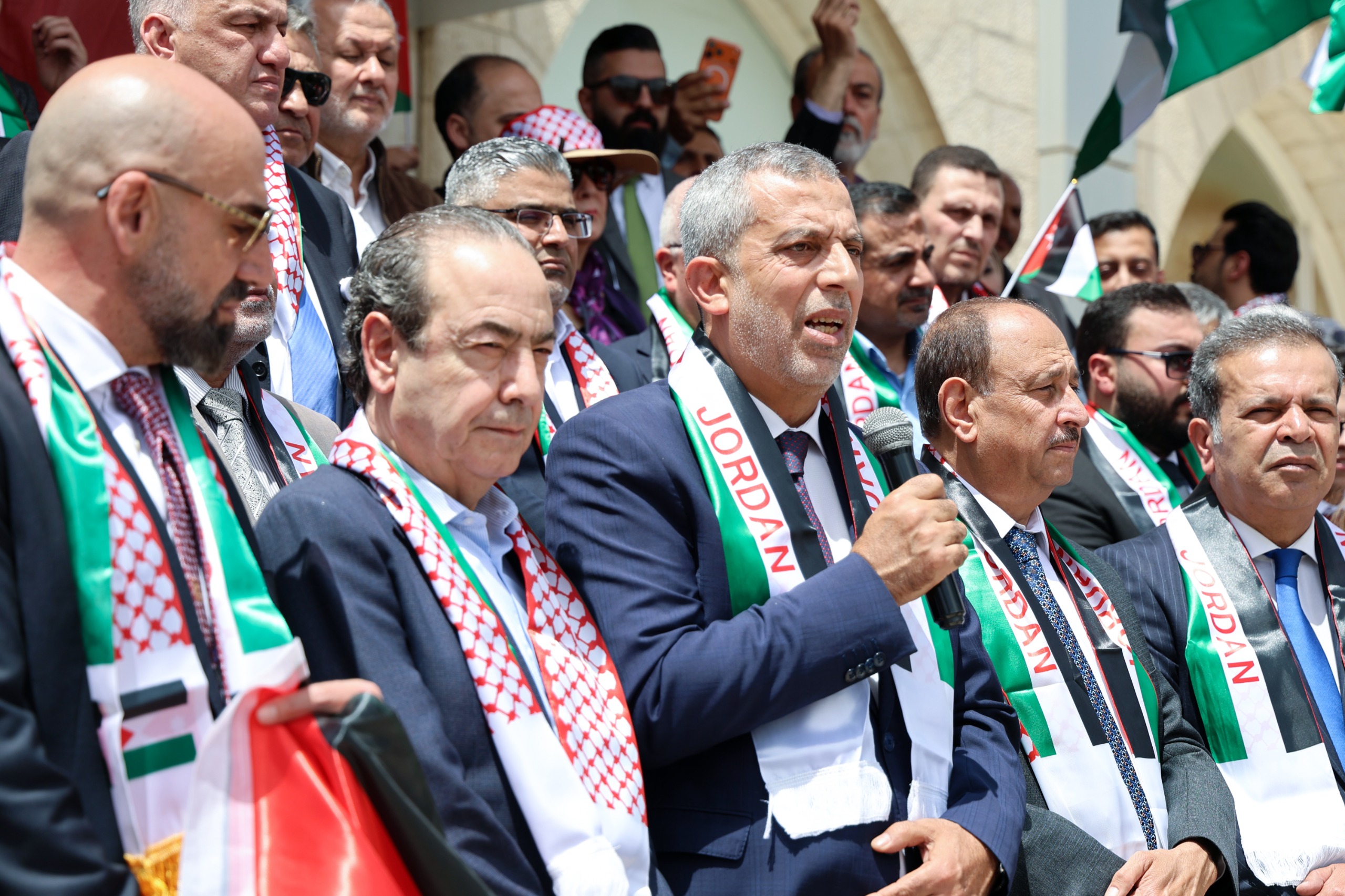 المشهد كلمات للمشاركين من أعضاء مجلس النقباء، إلى جانب رفع وتوزيع الأعلام وبث