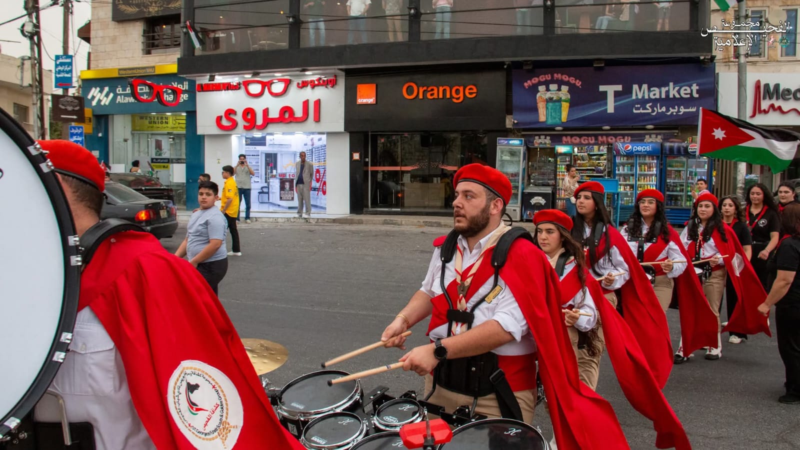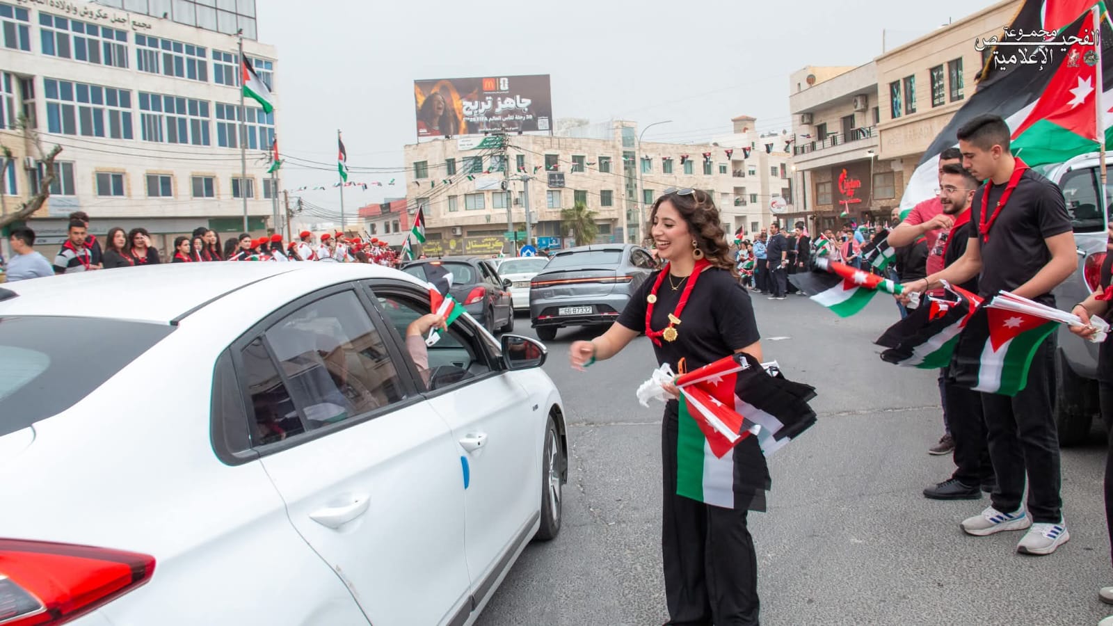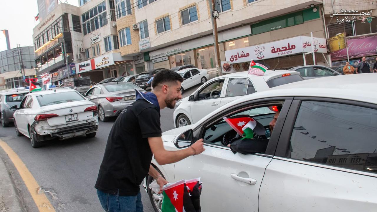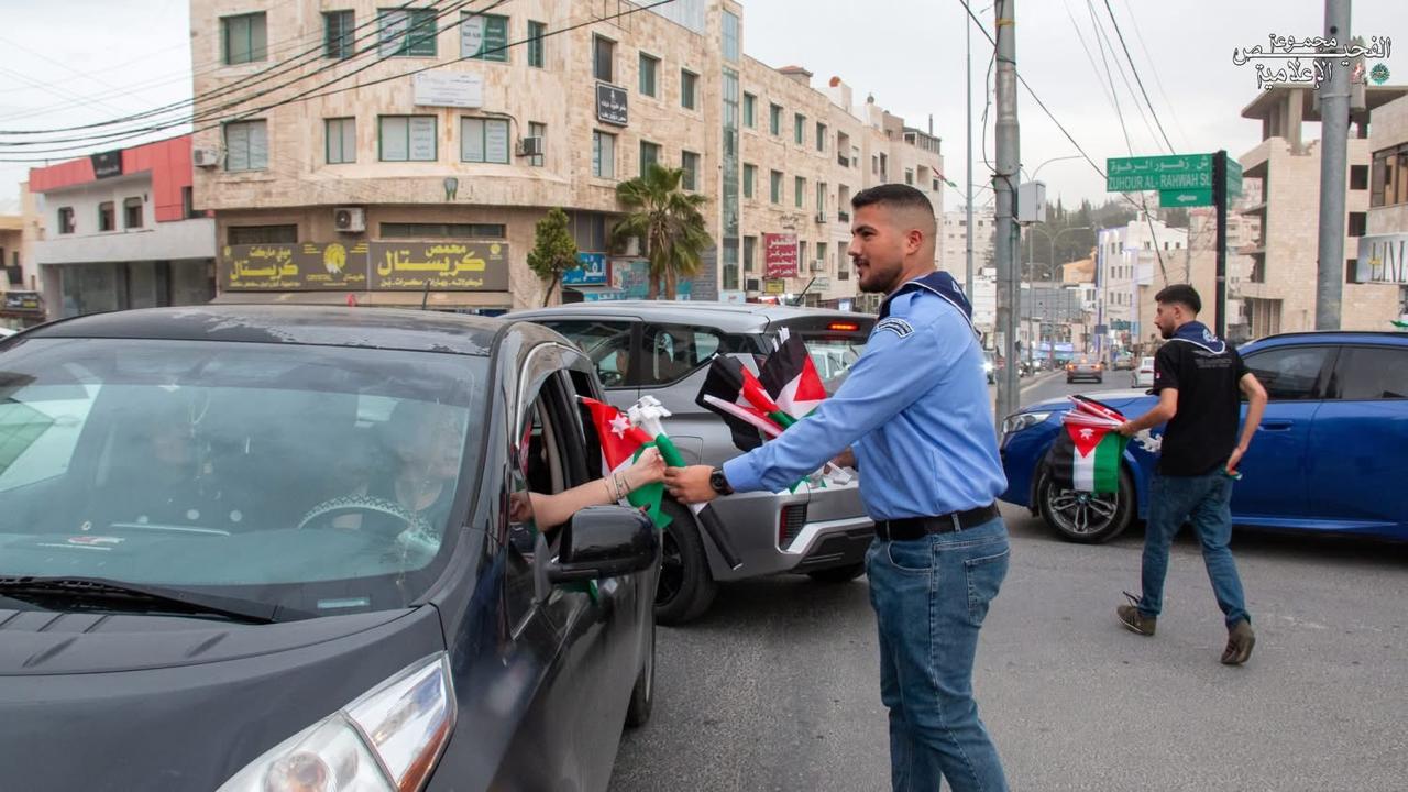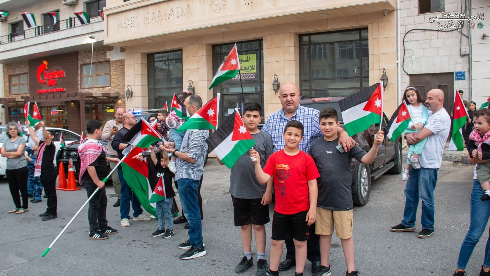الاحتفال على دوار شاكر حيث تزين المكان بالأعلام الأردنية، وسط حضور لافت