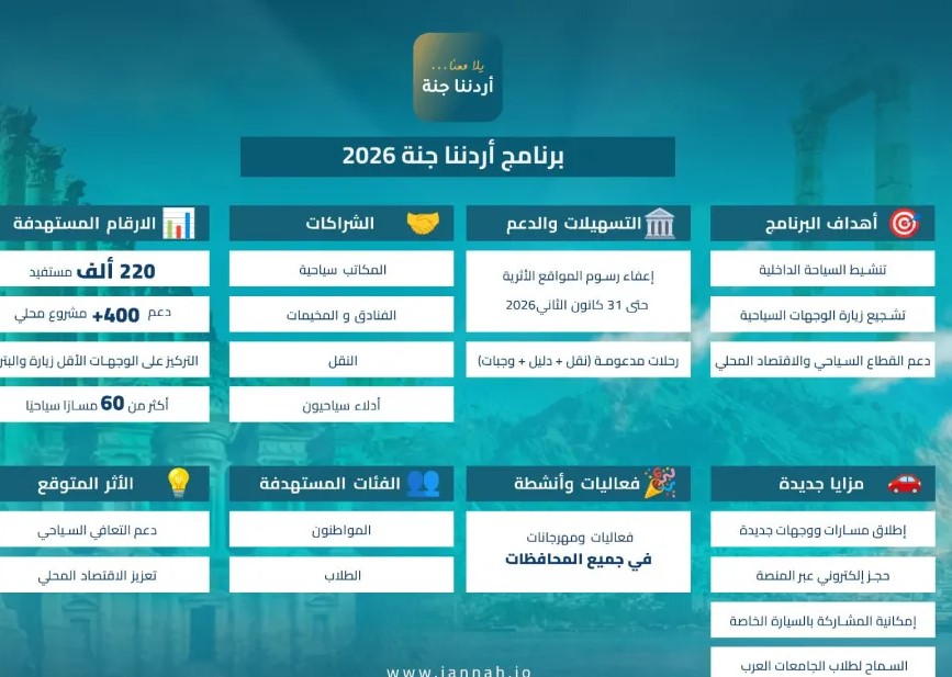 العيسوي: الجهود الدبلوماسية التي يقودها جلالة الملك تعزز حضور الأردن وتصون مصالحه في ظل المتغيرات الإقليمية* مجلس النواب يُقر المادة الثانية بـ"التعليم وتنمية الموارد" نواب أمريكيون يعربون عن قلقهم من الحالة العقلية لترامب بعد تهديداته المنفلتة لإيران "الخيرية الأردنية الهاشمية" توزع خياما إيوائية للأسر المتضررة في غزة من هيروشيما إلى غزة وإيران.. بلطجة "الكاوبوي" في زمن الانهيار العالمي توقيع مذكرة تفاهم بين "الأعلى للعلوم والتكنولوجيا" وصندوق الملك عبدالله الثاني للتنمية بني مصطفى تبحث مع فورد والإسكوا تعزيز التمكين الاقتصادي والحماية الاجتماعية سلطة وادي الأردن توقع اتفاقيات استثمارية لتعزيز التنمية المحلية بورصة عمان تغلق تداولاتها على ارتفاع طقس العرب: موجة برد غير معتادة تبدأ الليلة في الأردن تظاهرات سوريا، عفوية أم منظمة؟ استعصاء الأزمة مع اقتراب انتهاء مهلة ترامب.. وايران تسلم ردها للوسطاء.. والاعلم يحبس انفاسه الملك يحذر من استغلال اوضاع المنطقة لفرض واقع جديد بالقدس والضفة وغزة التربية تعلن تحويل رواتب معلمي الإضافي وشراء الخدمات للبنوك مجلس الأعيان يقر قانون "عقود التأمين" ويعيده لمجلس النواب القوات المسلحة: استهداف أراضي المملكة بصاروخ وثلاث مسيرات خلال ال 24 ساعة الماضية إصابة 13 شخصاً بضيق في التنفس نتيجة حريق هنجر بهارات في إربد منتدى التواصل الحكومي يستضيف مدير الإحصاءات الثلاثاء رياض ومدارس جامعة الزرقاء تفتح باب التسجيل للعام الدراسي 2026/2027 الظهراوي يحذر من ارتفاع جنوني للأسعار ويطالب الحكومة بالنزول إلى الأسواق