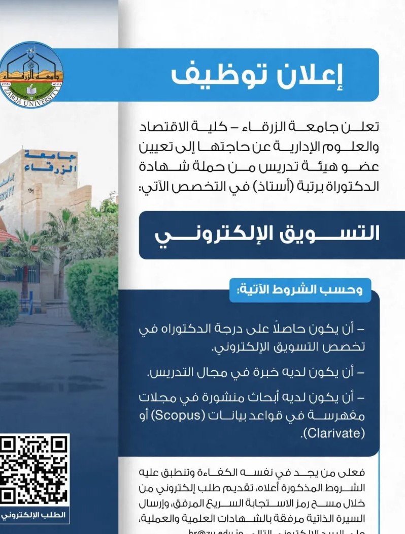 اعلان توظيف صادر عن جامعة الزرقاء